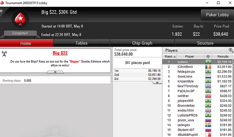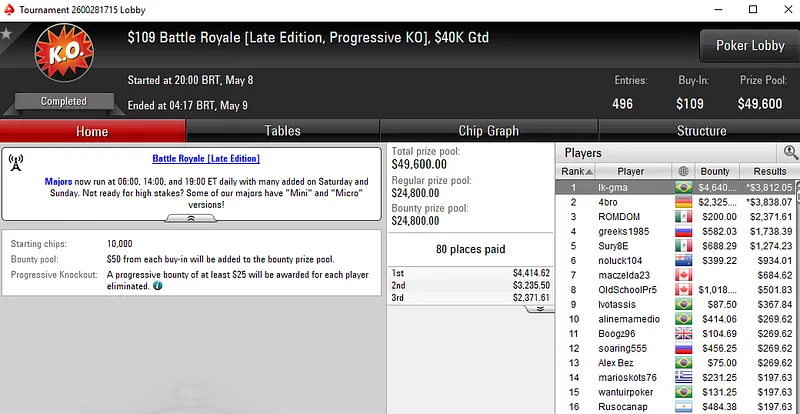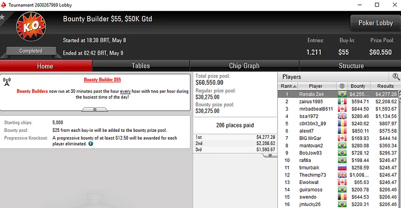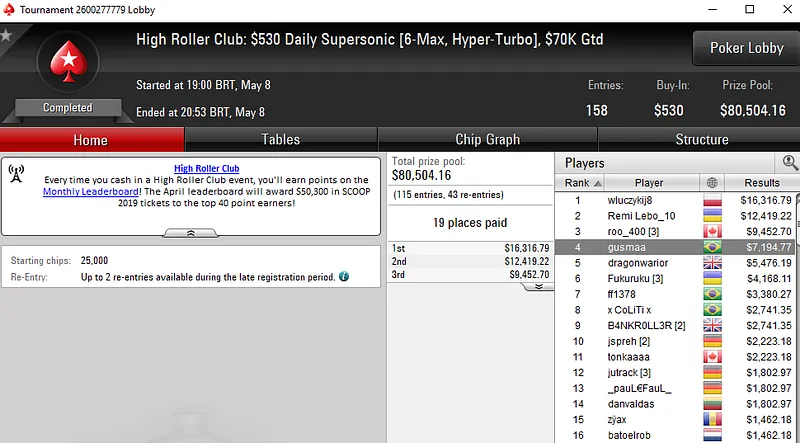 Dennys Ramos Fatura US$ 20 Mil no High Roller Club do PokerStars