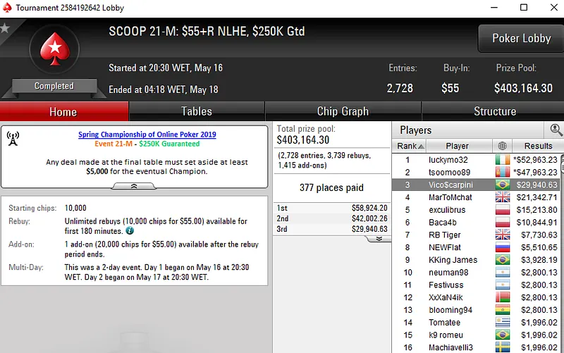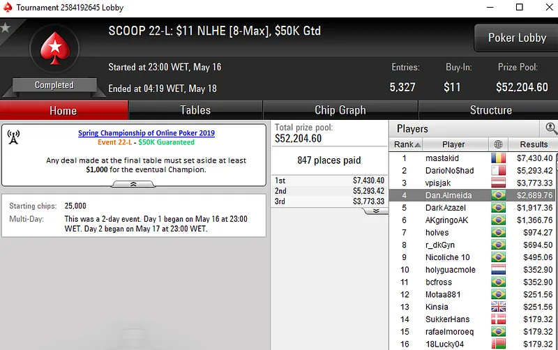 Mais Três Títulos para o Brasil no SCOOP 2019 do PokerStars