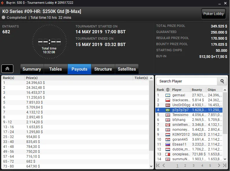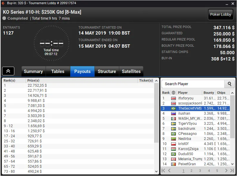 Além dos dois resultados acima, os brasileiros forraram em vários outros torneios, incluindo nos eventos da KO Series do partypoker. Confira na galeria abaixo: