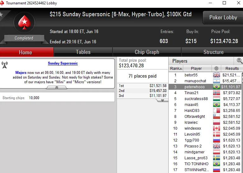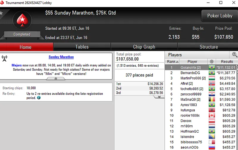 Outros resultados brasileiros na reta de domingo do PokerStars