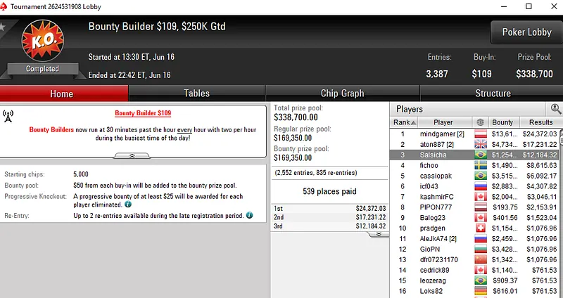 A edição desta semana do Sunday Million registrou 10.232 entradas e distribuiu uma premiação de US$ 1.023.200. O brasileiro garantiu a terceira colocação e embolsou um prêmio de $55.238, o maior resultado para o Brasil na reta de domingo.