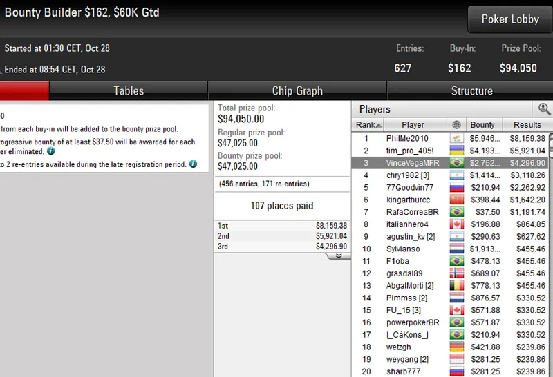 Além dos títulos conquistados na Bounty Builder Series, os jogadores brasileiros também se deram bem nos torneios regulares do PokerStars.