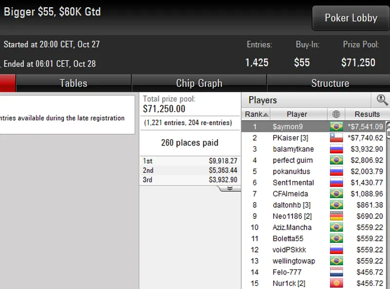 Outros resultados do país nos torneios regulares do PokerStars: