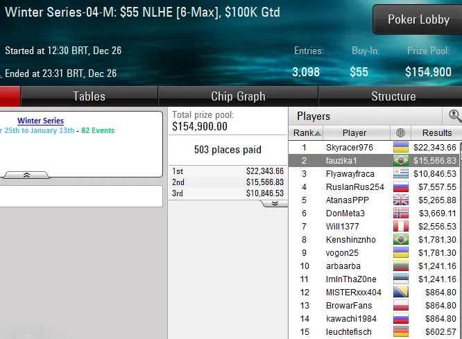 Os grinders brasileiros deram show no segundo dia de ação da Winter Series e conquistaram os primeiros dois títulos para o país na série online do PokerStars.