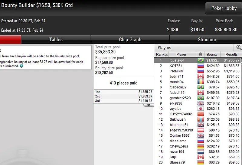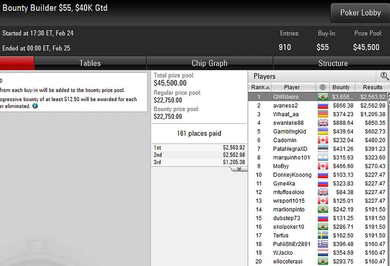 Éder Campana vence título do US$ 530 Bounty Builder HR do PokerStars