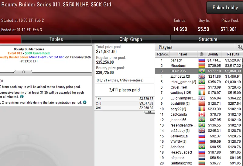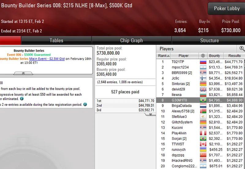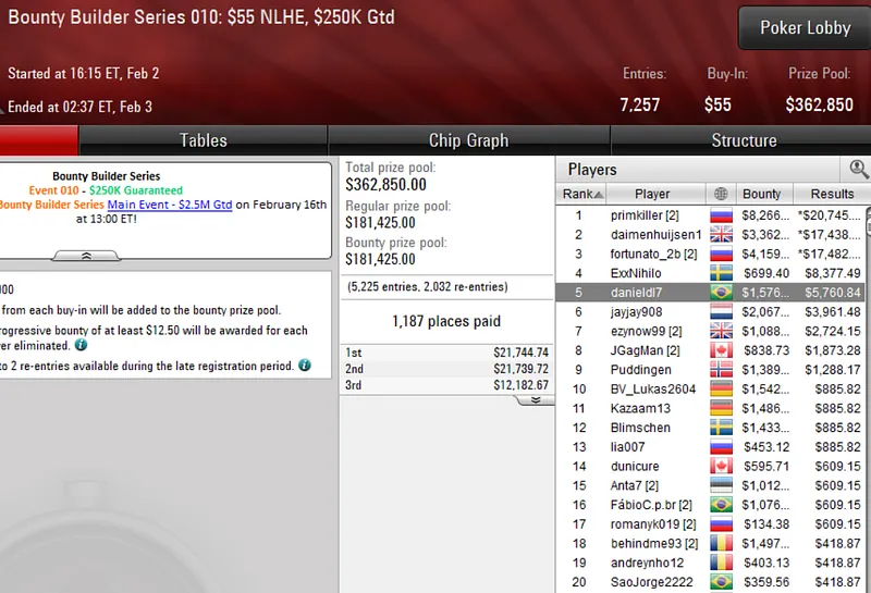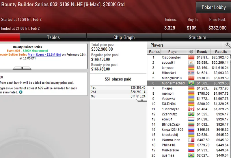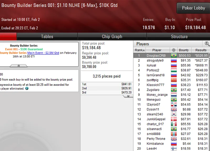 O primeiro domingo de grind de fevereiro nas mesas do PokerStars ficou marcado pelo início de mais uma edição da Bounty Builder Series. O Brasil marcou presença em peso e cravou vários títulos logo no primeiro dia do festival.