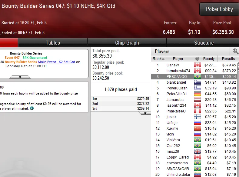 Os jogadores brasileiros continuam aprontando na Bounty Builder Series do PokerStars. Depois do show de Guilherme Cheveau na reta de terça, nesta quarta-feira foi a vez de Victor Pedote soltar o grito de campeão na série de torneios Progressive Knockout.