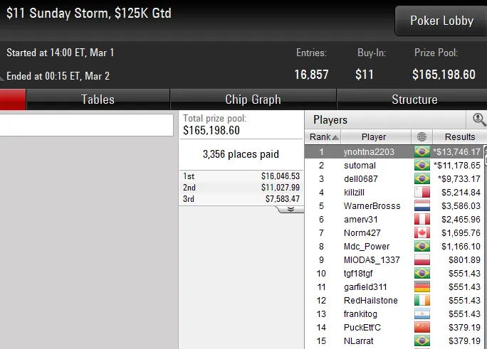 Na mesa final, Garla teve a companhia do compatriota dono da conta igorcn, jogador que embolsou US$ 9.240 pela quarta colocação.