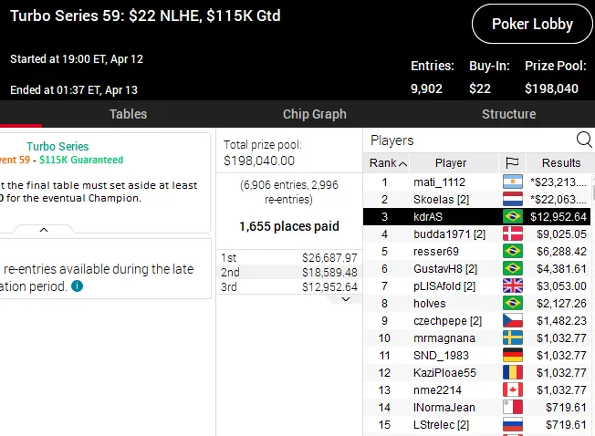 Brasileiros forram pesado na Turbo Series do PokerStars