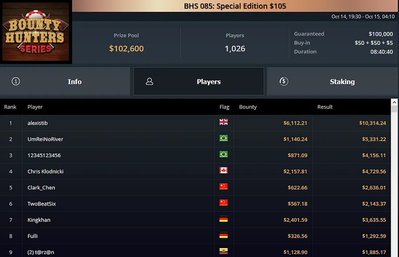 Os brasileiros seguem acumulando títulos no festival Bounty Hunters Series da GGPoker. Nesta quarta-feira, o grinder dono da conta "ElefantPreto" esteve em grande destaque ao cravar um dos títulos do país, embolsando o maior prêmio verde e amarelo do dia.